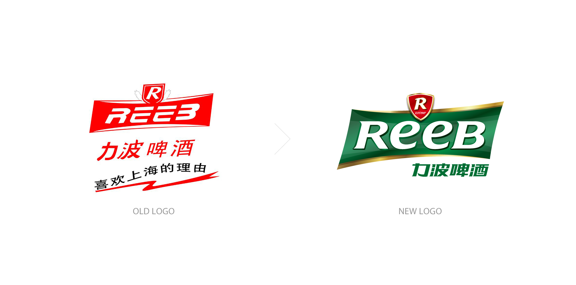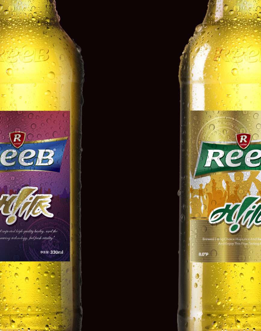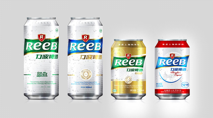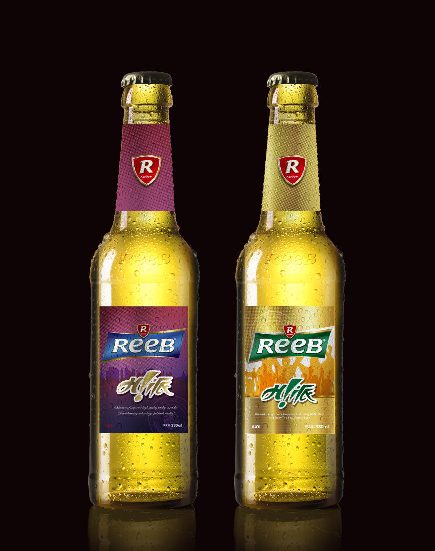造型:“REEB”字體的設計工業性太強,優化英文字體設計,在設計界首次運用字母大小寫穿插的手法,強化笑臉的ee的視覺感,增強親和力。R標元素、盾形、四邊形、力波啤酒中文字體進行深度優化。提現年輕人的張力與銳氣,朝氣等氣質元素,提升品質感。