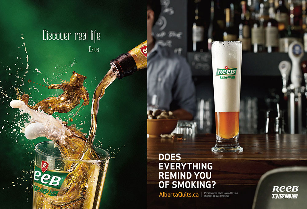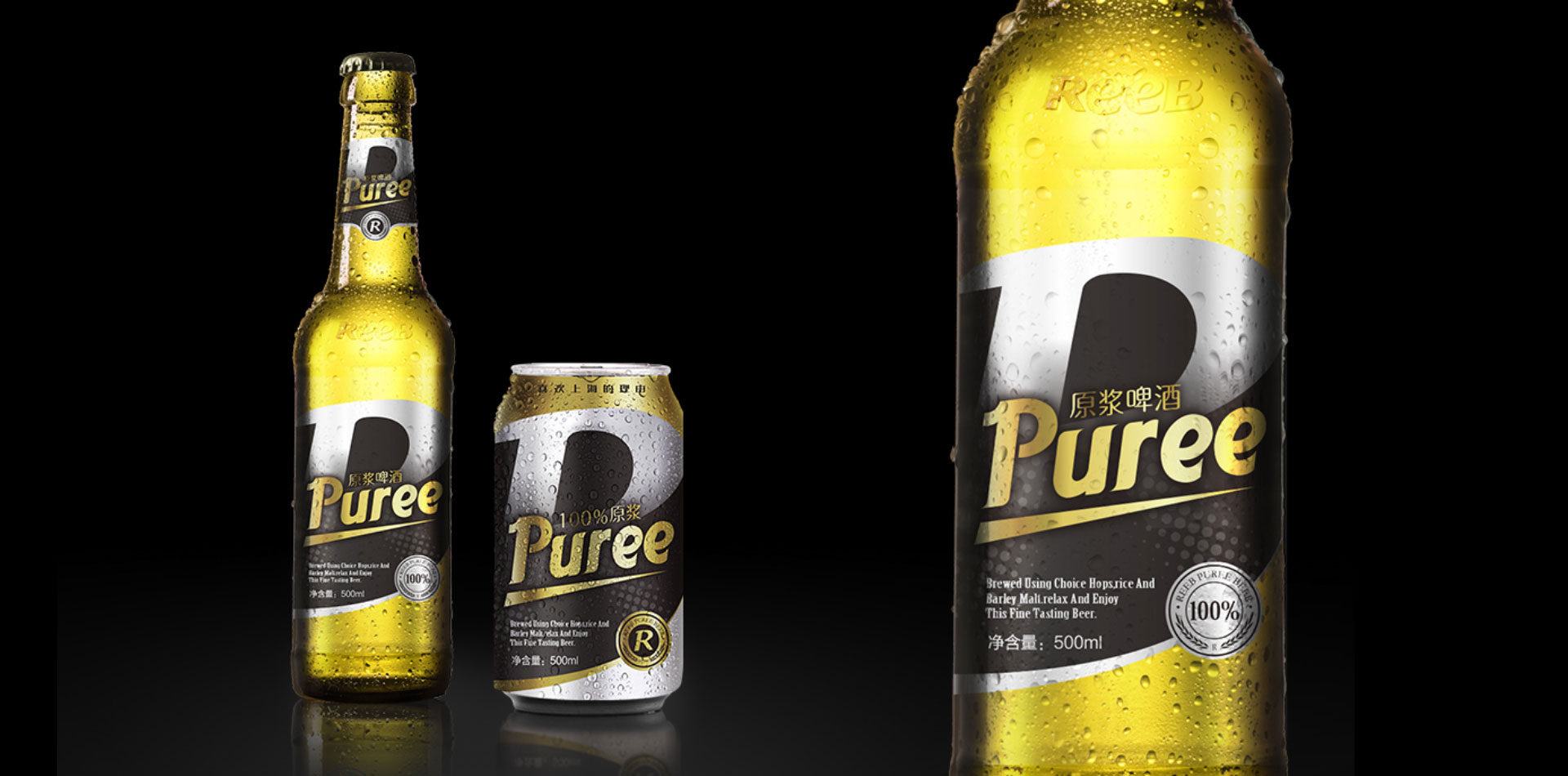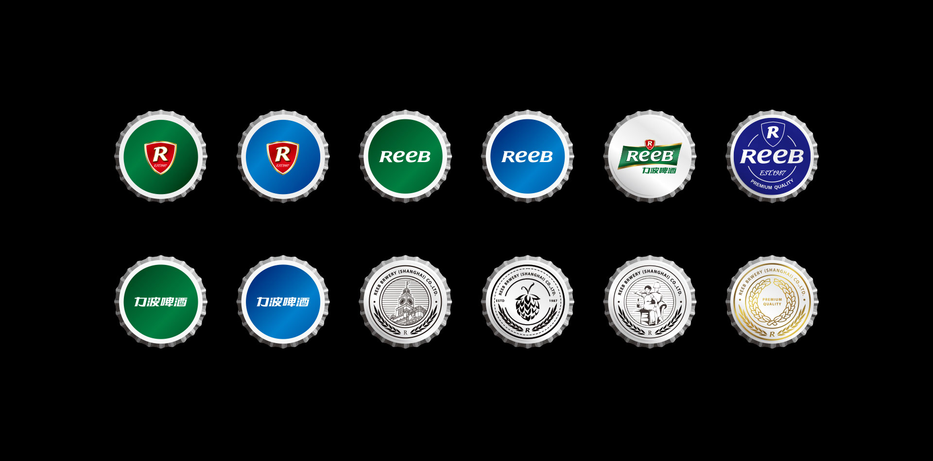 造型:“REEB”字體的設計工業性太強,優化英文字體設計,在設計界首次運用字母大小寫穿插的手法,強化笑臉的ee的視覺感,增強親和力。R標元素、盾形、四邊形、力波啤酒中文字體進行深度優化。提現年輕人的張力與銳氣,朝氣等氣質元素,提升品質感。