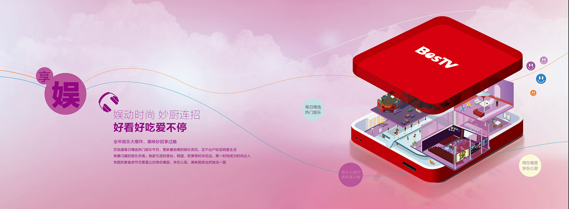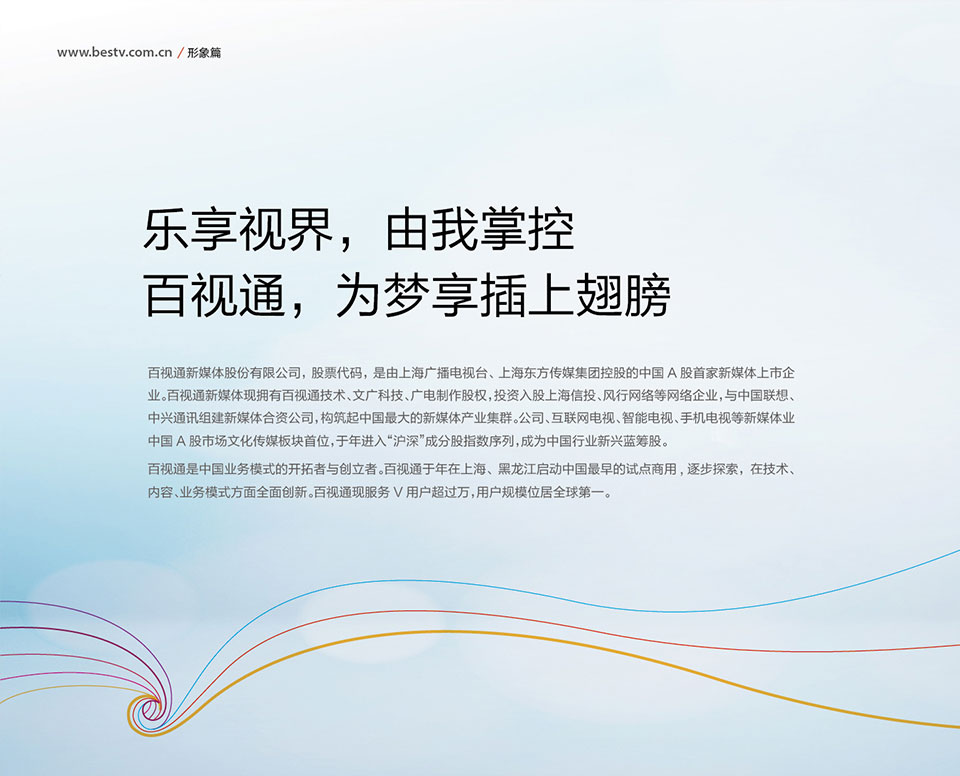 BesTV 依托SMG,擁有強大的視聽內容創(chuàng)意與生產、交互產品研發(fā)與應用、新媒體管理與運營的綜合優(yōu)勢;同時,BesTV在網絡電視(IPTV)技術方面與微軟、Cisco、華為等國際知名公司合作,擁有業(yè)界領先的媒體運營管理平臺。BesTV在中國IPTV產業(yè)中處于領先地位,國際媒體評價BesTV為全球最著 名的IPTV產業(yè)品牌之一。